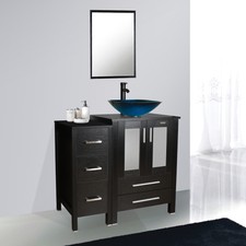 Perfect for any remodel, this 36 vanity adds an easy update to the master or guest bathroom. It's made with a pine wood base in a solid, neutral color, and comes with a stone countertop and arched backsplash. Walcut bathroom vanities bathroom vanity with sink 36 inch black mdf wood cabinet and round glass vessel sink faucet drain mirror combo(2) 36 4.3 out of 5 stars 92 $675.99 $ 675. We offer the finest quality craftsmanship in oak, cherry, and maple. $1,199.99 after $500 off thomson 72 vanity by studio bathe oxford gray or white finish;